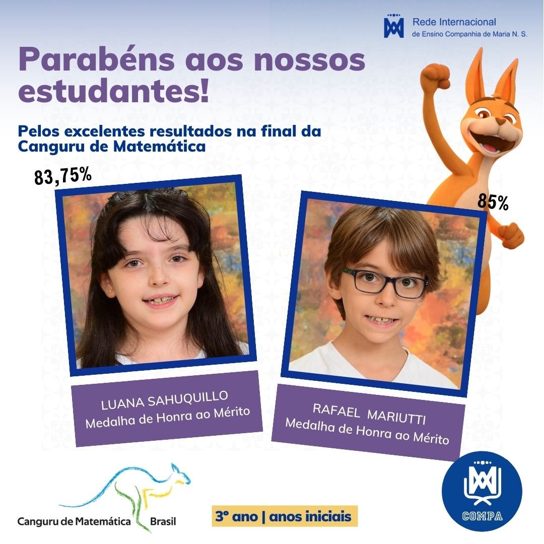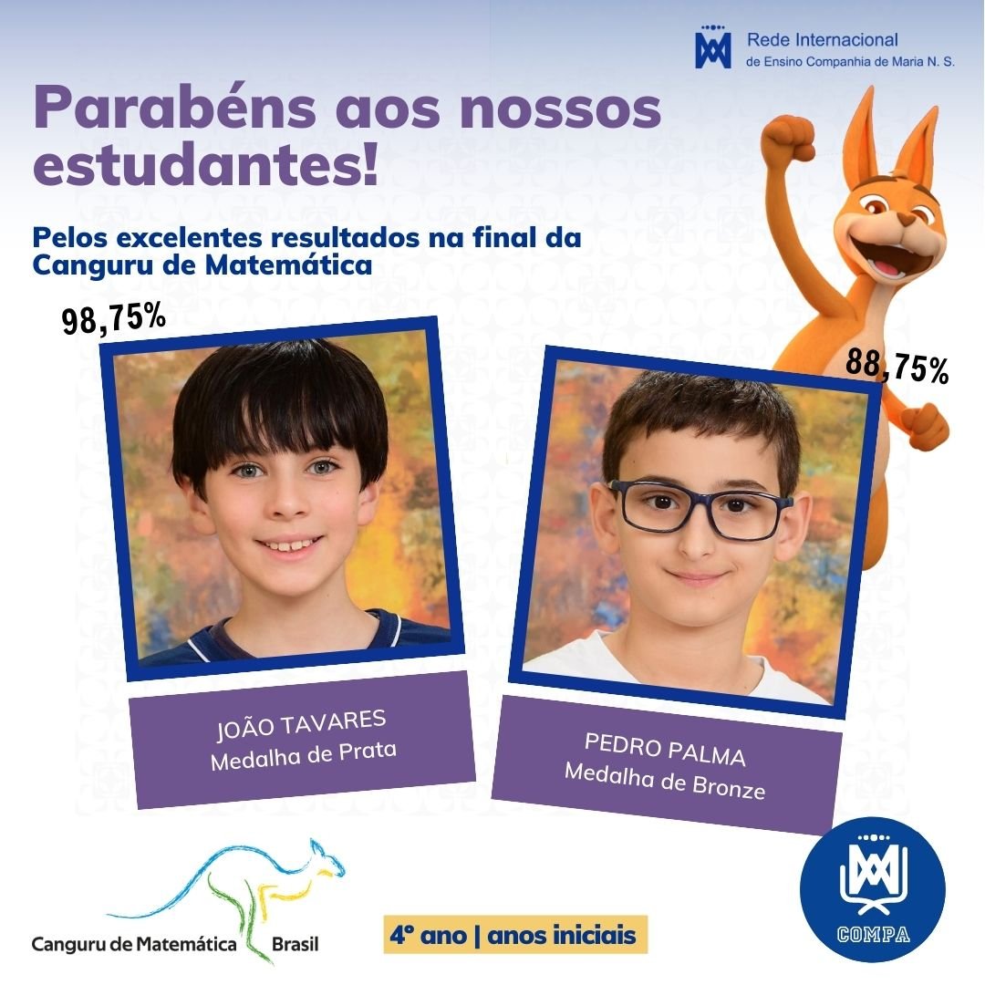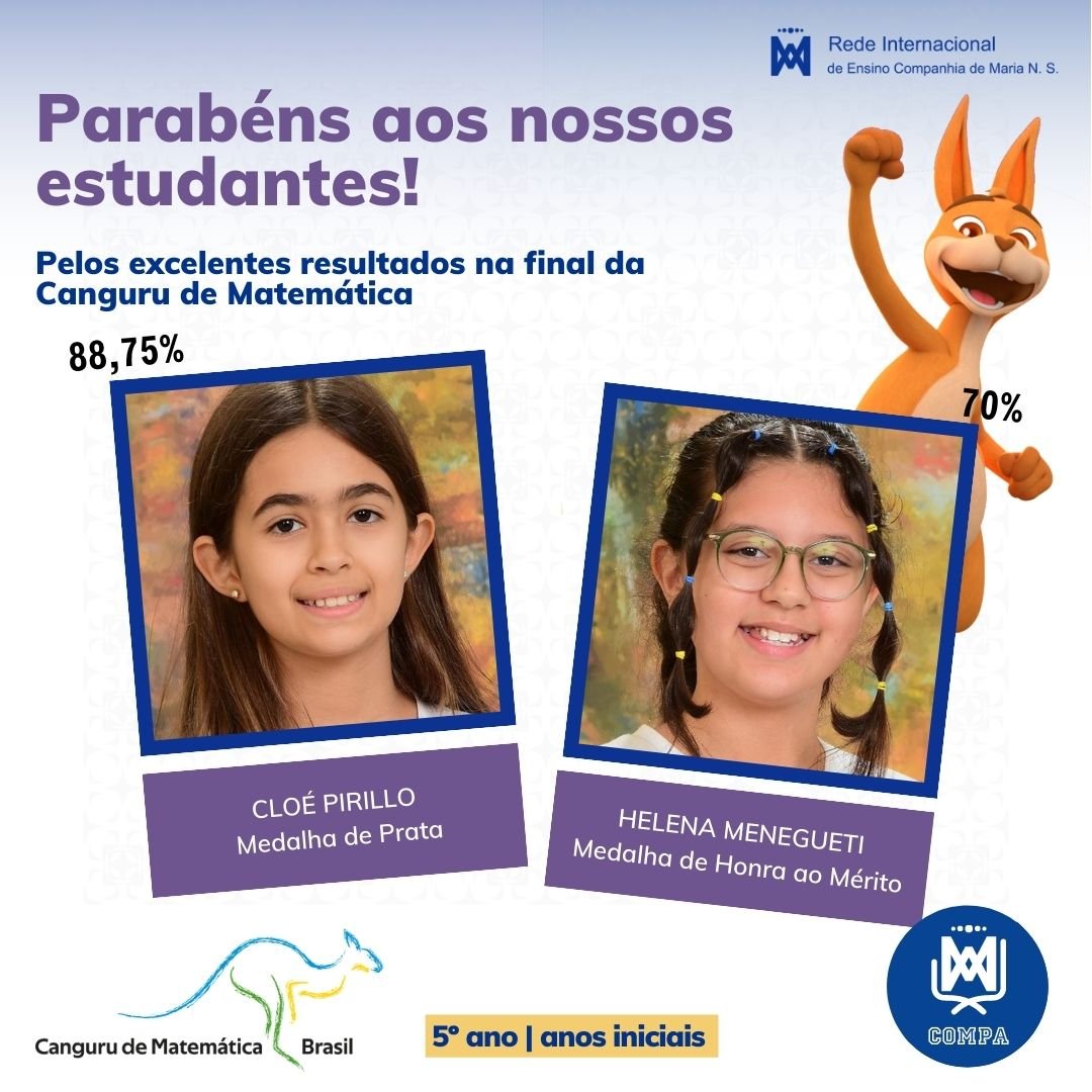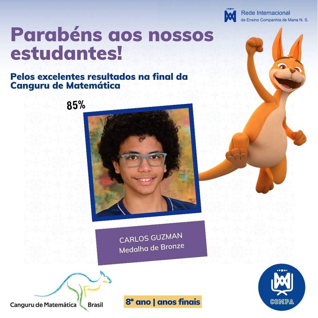 Parabéns aos nossos estudantes pelos excelentes resultados na final da Canguru de Matemática Brasil! Este concurso é reconhecido como a maior competição de Matemática do mundo, contando com mais de 6 milhões de participantes por ano em mais de 80 países.